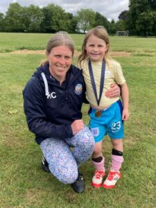 My daughter was hesitant at first. Having me nearby helped her find the confidence to give football a try. She once told me, “I love mummy coaching me because I get to spend more time with her and play games together.” Now, she arrives at training full of energy, determined to run with the ball and score goals. That confidence is something I hope she’ll carry with her as she moves up to U7s next year.